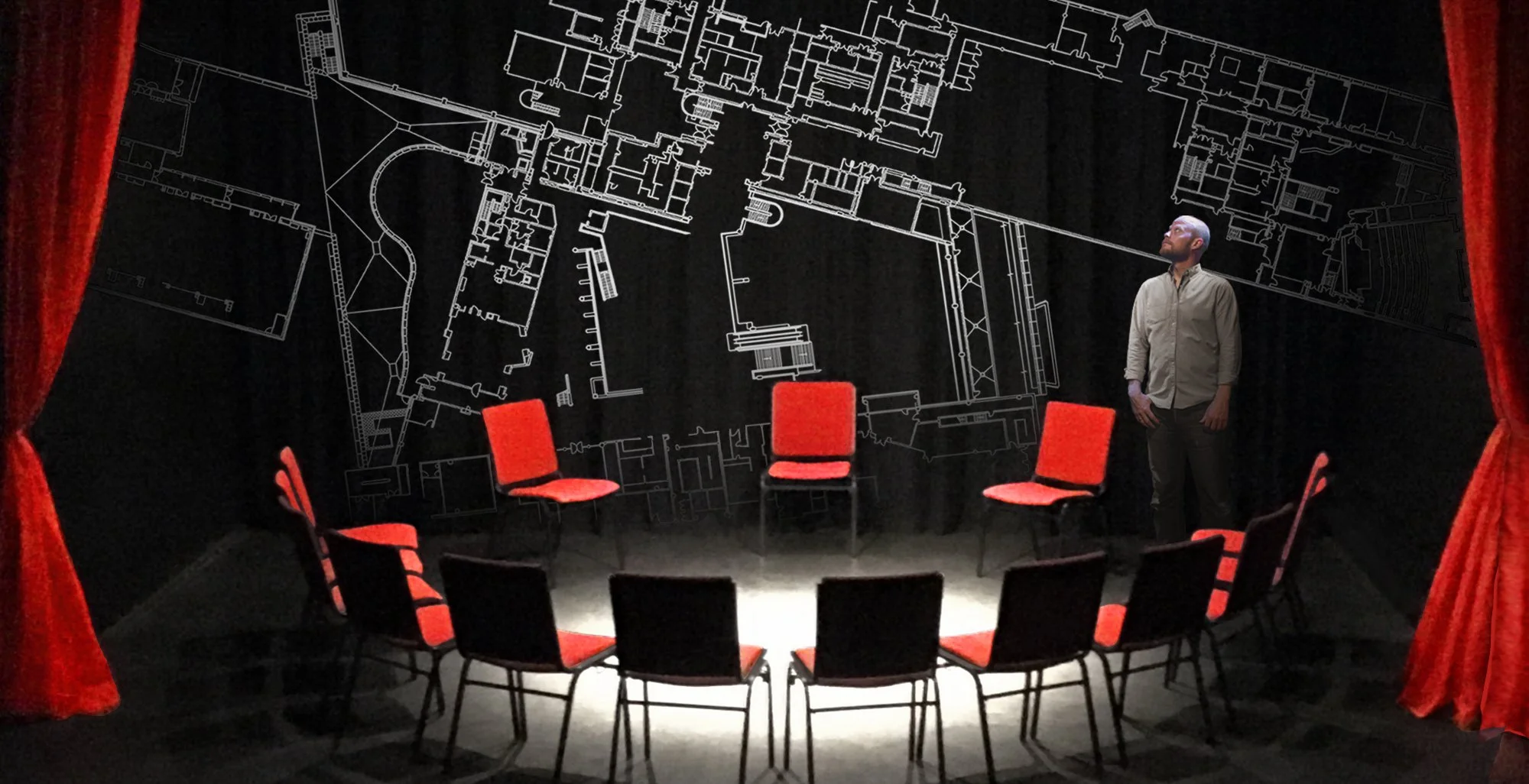 After viewing the Secret Maps exhibition, you will be guided you through the Library, imagining the unseen areas of the landmark building and its ever-growing collections. This tour leads to a performance, where a man stands on a bare stage and describes another place: a version of the British Library that may or may not exist.